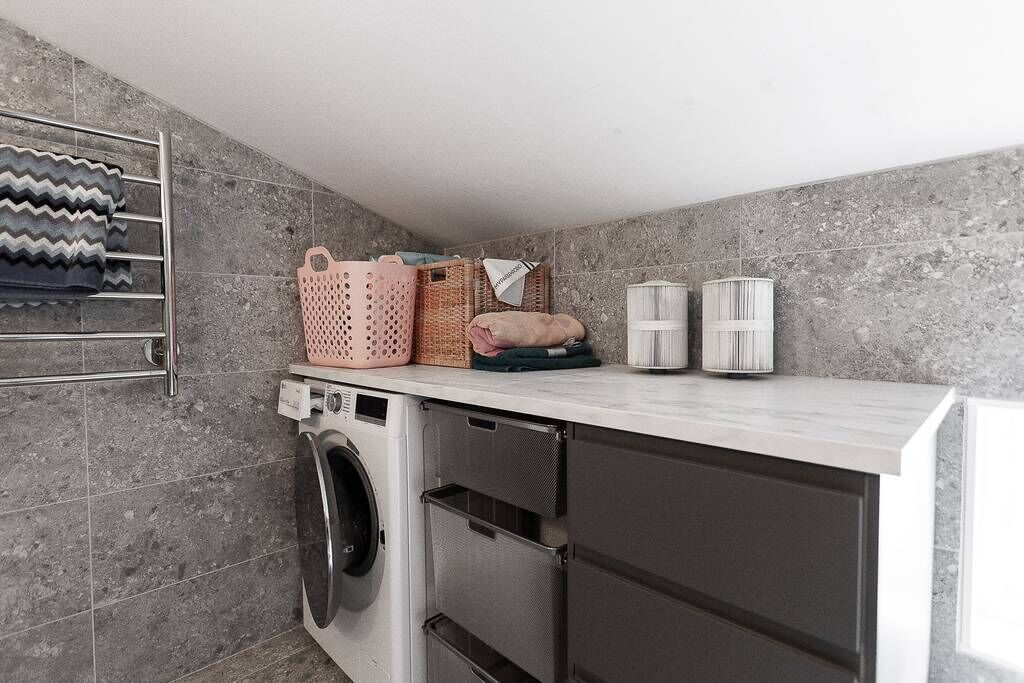 Das Haus selbst ist großzügig und geschmackvoll eingerichtet. Es verfügt über vier Schlafzimmer, zwei voll ausgestattete Bäder, ein gemütliches Wohnzimmer mit Kaminofen sowie ein Esszimmer – beide mit herrlichem Seeblick. Die moderne Küche lässt keine Wünsche offen: Herd, Backofen, Geschirrspüler, Kühl-Gefrierkombination mit Eiswürfelspender und Mikrowelle stehen zur Verfügung. Auch eine Waschmaschine mit integriertem Trockner ist vorhanden.